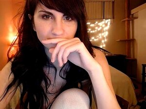 Oscuro cabello moreno caliente con medias interiores provocando en la web livecam,